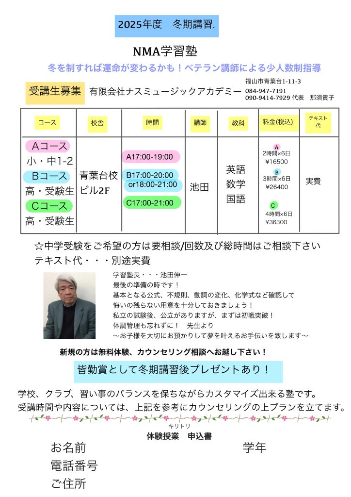 冬期講習・学習塾へのお問い合わせお待ちしております!